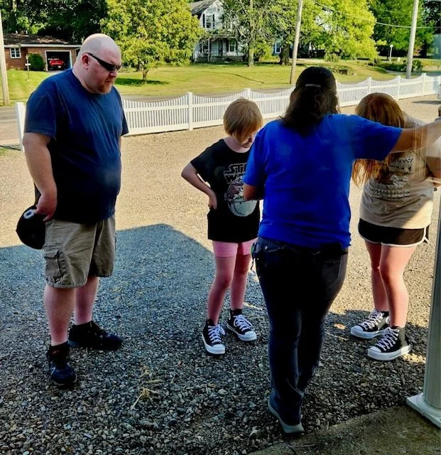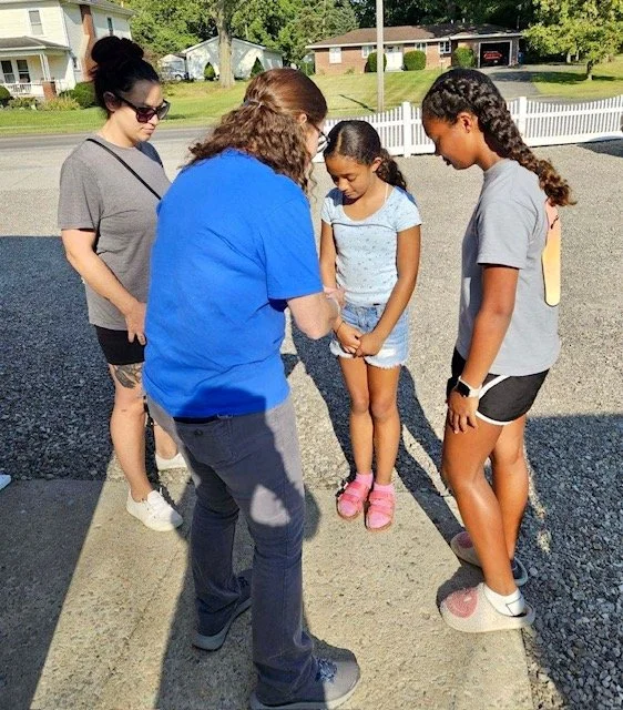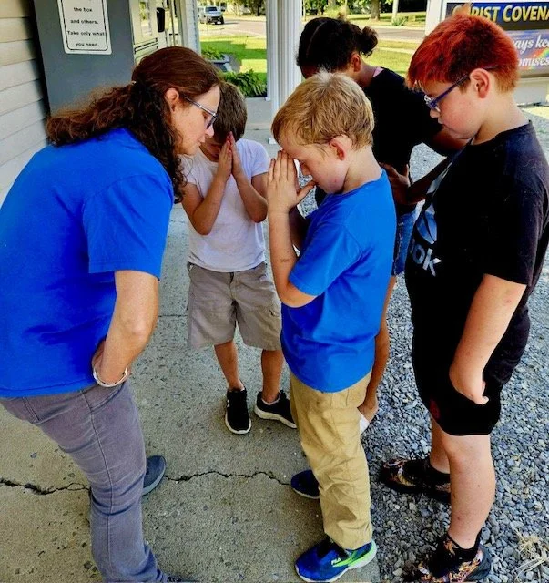 We pray for each child and their families for the upcoming school year at the backpack distribution.
