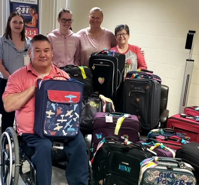 We had a great time bedazzling suitcases for foster children in our area. It is all too common for them to have to carry their belongings in pillowcases, garbage bags, and the like due to the oftentimes quick removal of them from their home. We thought it would be great if Children’s Protective Services had some suitcases on hand in cases like this. We wanted to put a personal stamp on each one in the hope that it would bring a child some sense of joy and comfort in this most difficult of circumstances.