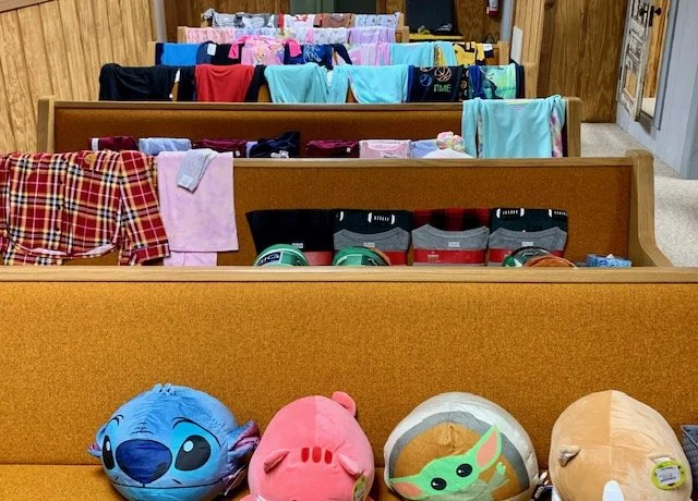 A favorite outreach of SSM happens every fall with our warm pajama distribution for the kids (or, as Pastor Shelley calls them, “jim jams”), which includes slippers, blankets, a family board game and, of course, “Squishmallows.” It has become one of our most beloved traditions.